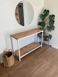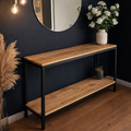 El Arrimo de Roble Nui es la solución para quienes aman el orden sin sacrificar el estilo. Incorpora dos cubiertas de roble de 2 cm, creando un mueble dinámico que te permite decorar en el nivel superior y organizar libros, revistas o cestas en el inferior.