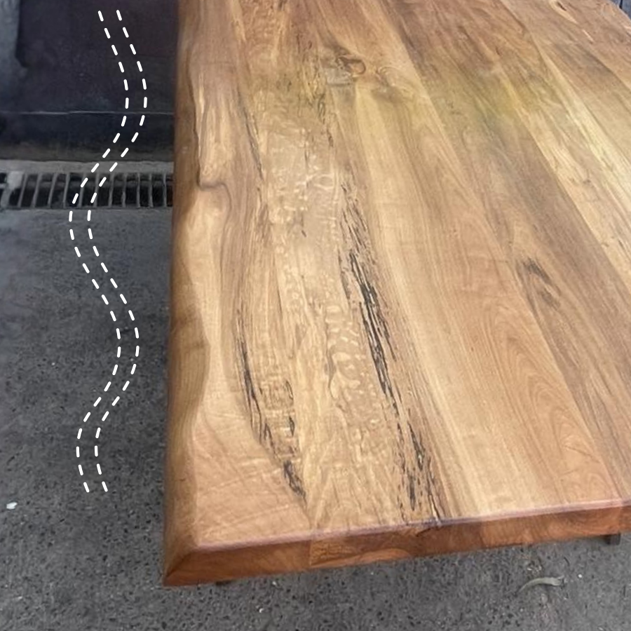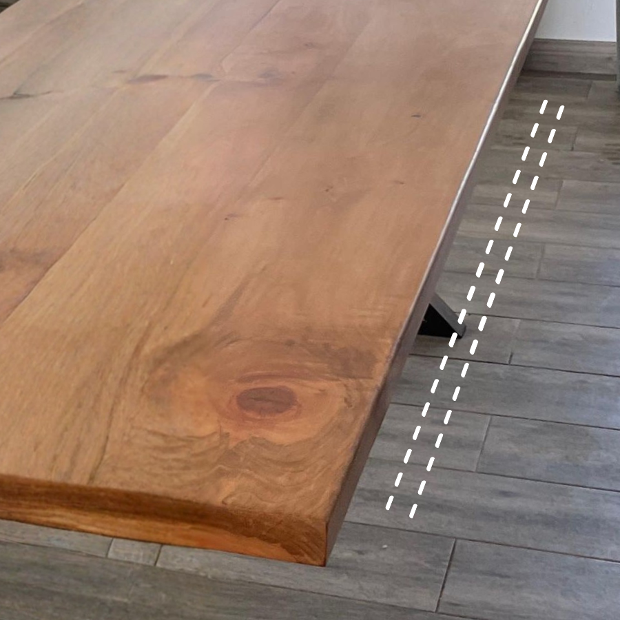 La cubierta de roble macizo de 4 cm aporta la nobleza necesaria para que, ya sea tomando un vino o trabajando con el computador, sientas la calidad artesanal bajo tus manos.