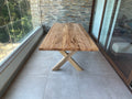 La Mesa Kumu es una oda al diseño inteligente. Mientras muchas mesas de madera maciza pueden sentirse pesadas, la Kumu logra lo contrario gracias a su base de líneas abiertas y diagonales.