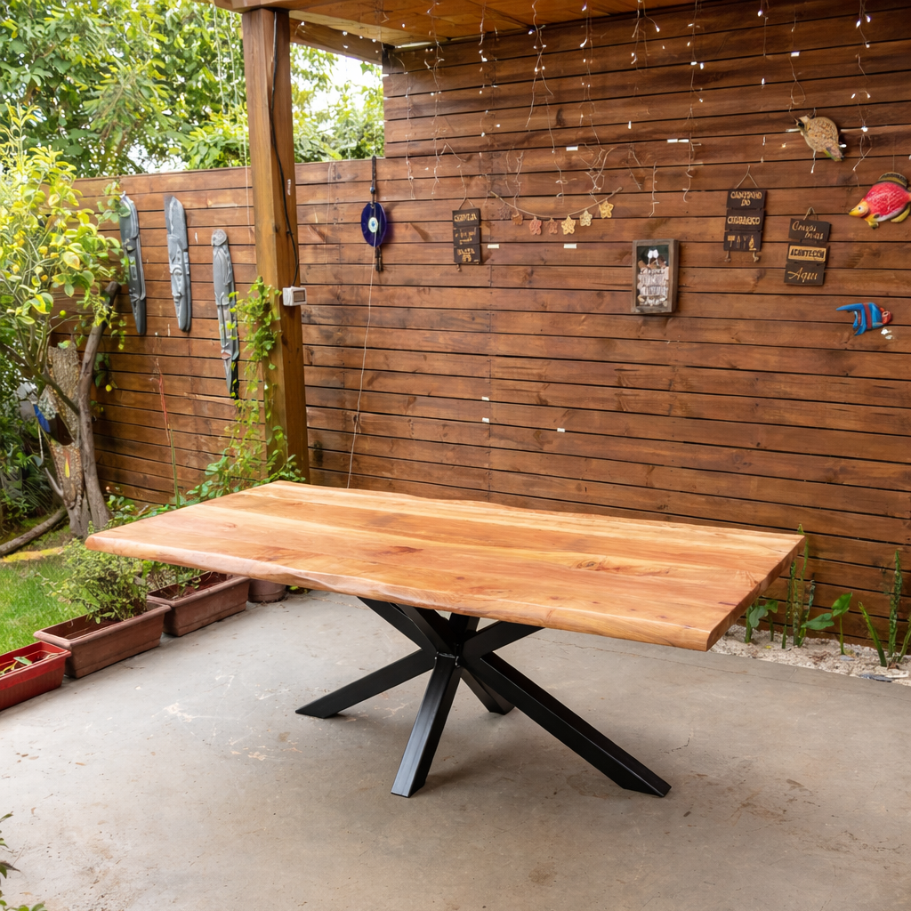 La cubierta de roble macizo de 4 cm aporta la textura y la calidez que todo comedor necesita, mientras que su base de fierro perfil 75x75 mm ofrece una estabilidad arquitectónica superior. Aquí no hay vibraciones ni movimientos; es una mesa sólida como una roca.