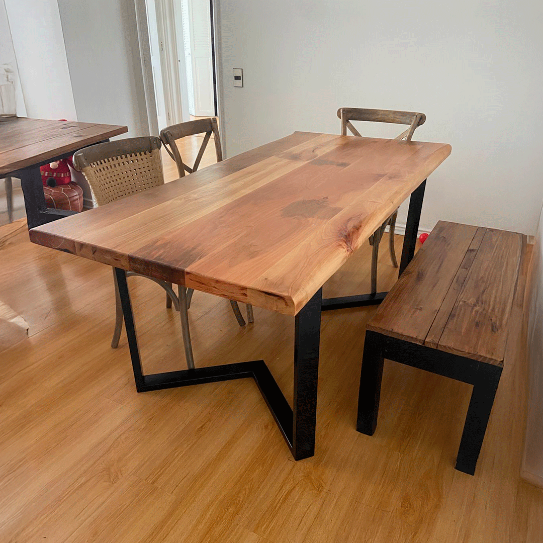 Sobre esta estructura de fierro perfil 70x30 mm descansa una cubierta de roble macizo de 4 cm, manteniendo la calidez esencial de la madera. Es el equilibrio perfecto entre la ingeniería del metal y la naturaleza del bosque.