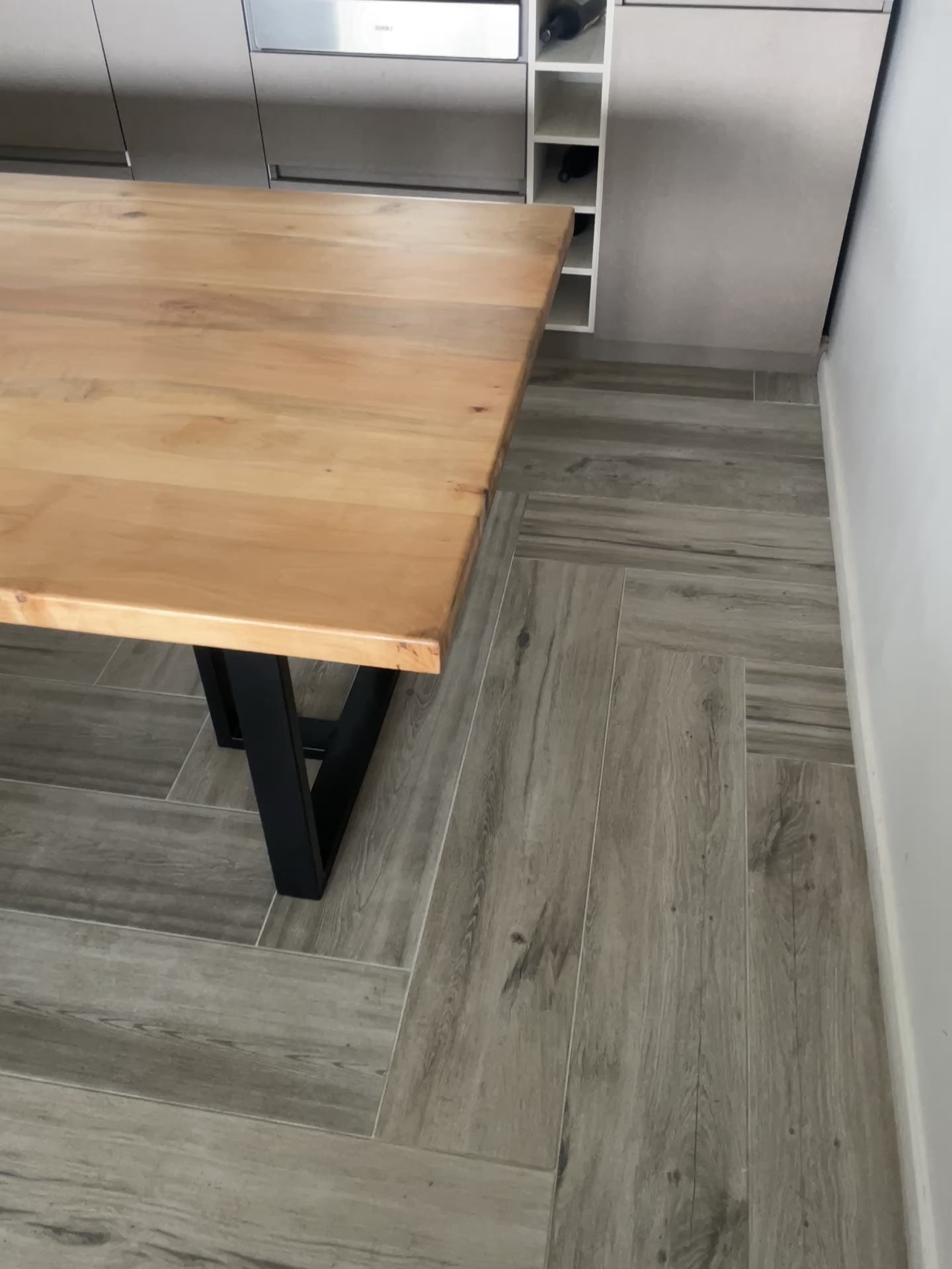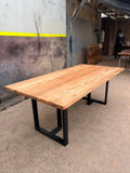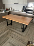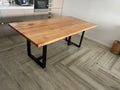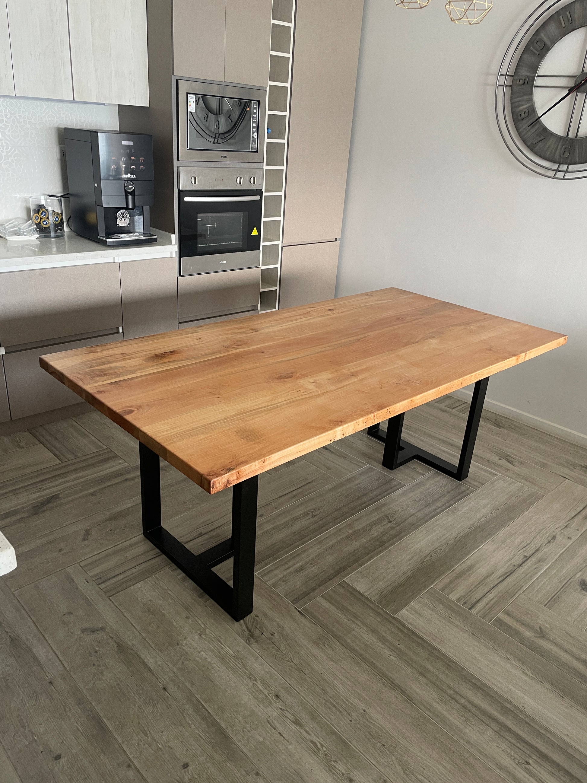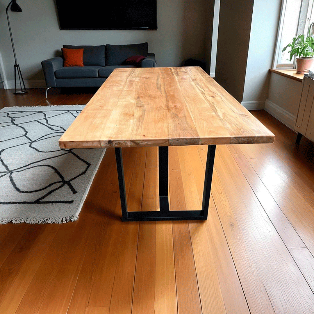 La cubierta de roble macizo de 4 cm mantiene la conexión con lo natural, exhibiendo vetas y formas únicas. Pero es la base la que marca la diferencia: construida con un perfil de fierro rectangular de 70x30 mm, ofrece una resistencia superior con una estética visualmente ligera y moderna.