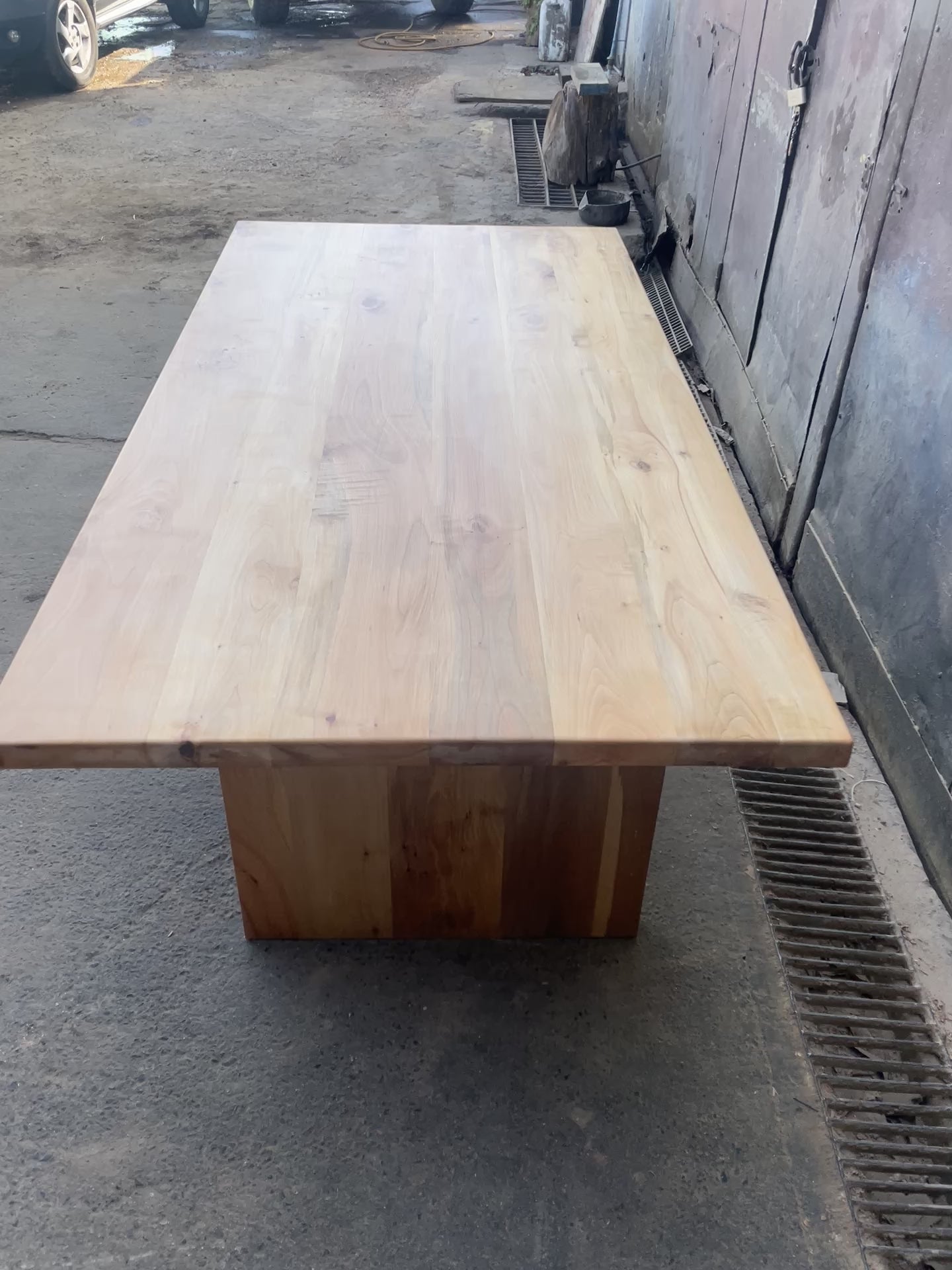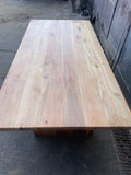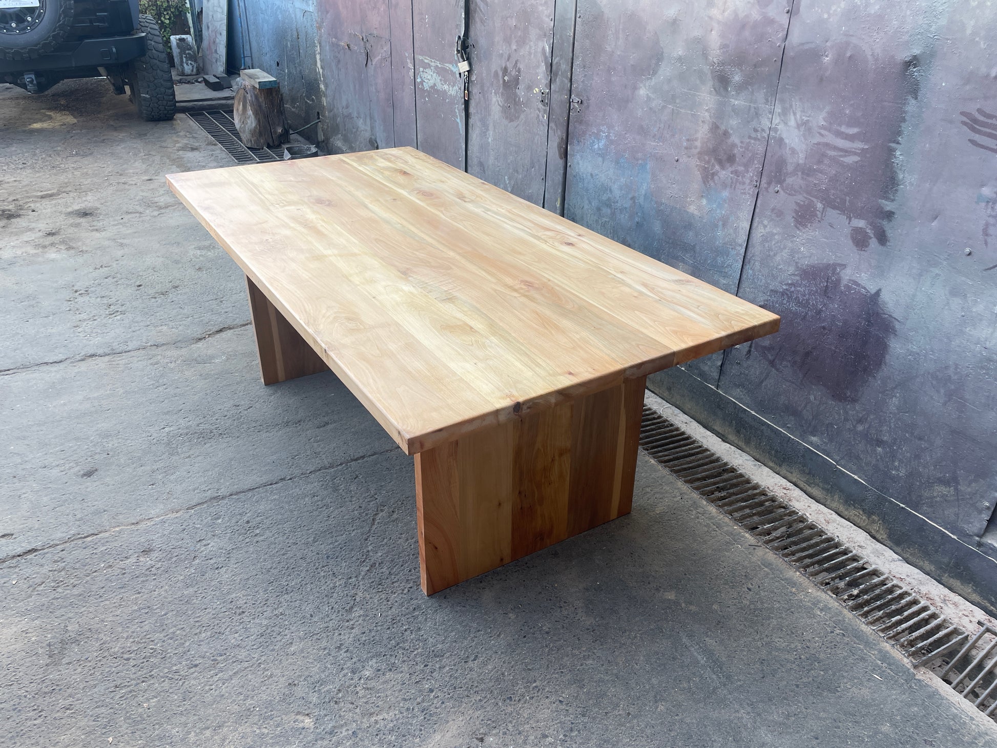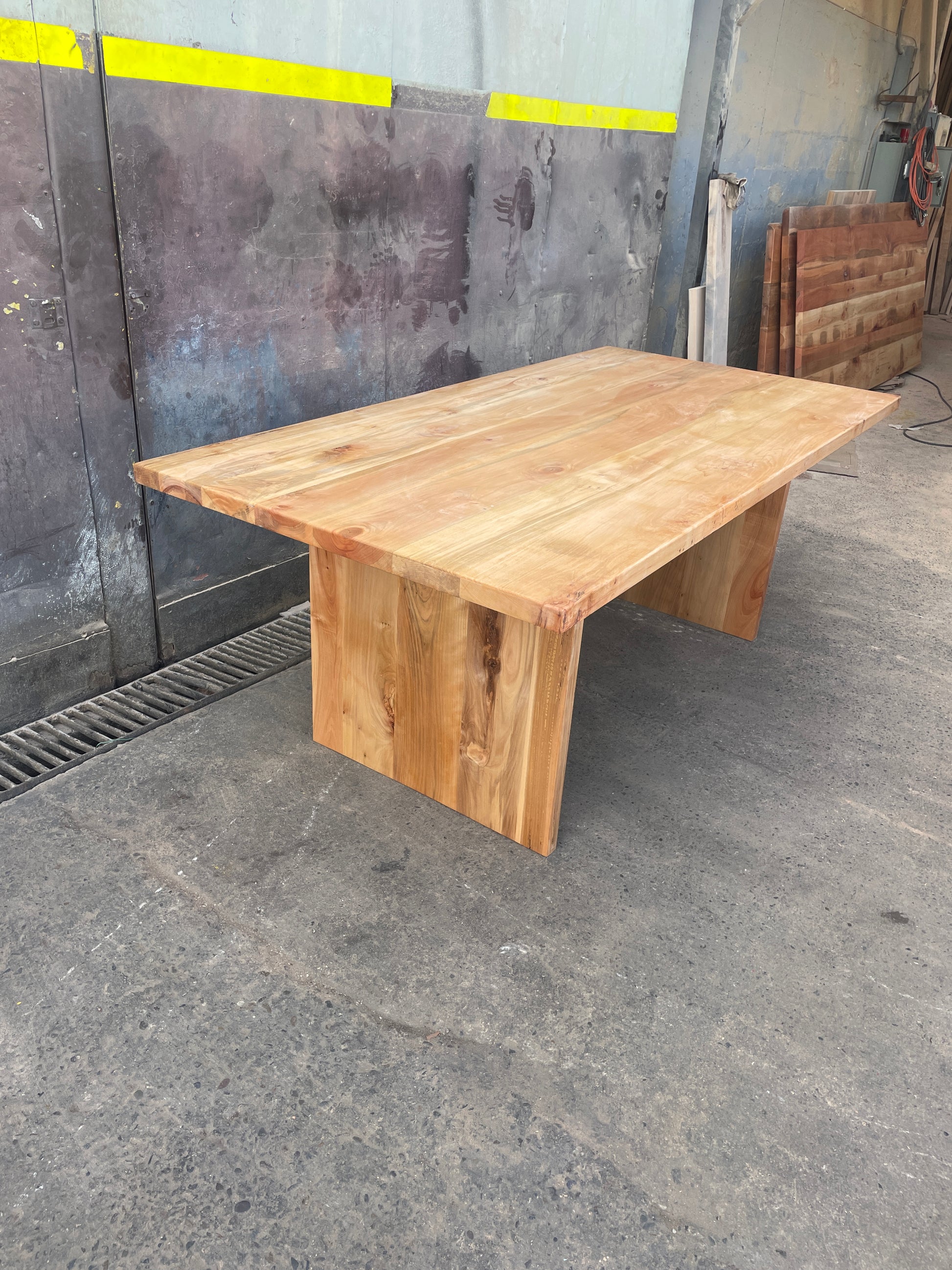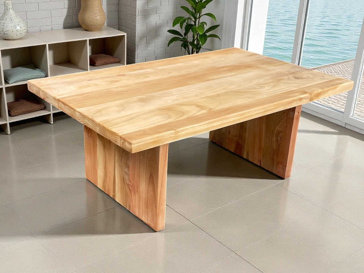 Hemos fabricado esta pieza íntegramente en roble chileno, aplicando una regla de oro: igualdad de espesores. La cubierta de 4 cm descansa sobre una base también de 4 cm, creando una armonía visual que transmite estabilidad y calma.