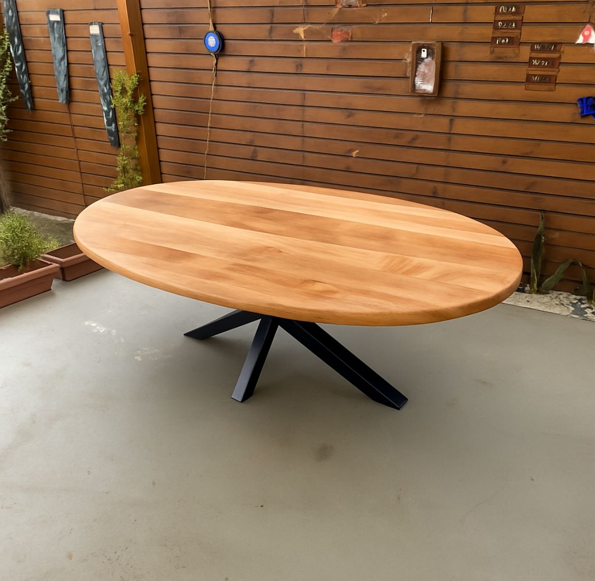 La cubierta de roble macizo de 4 cm aporta la textura y la calidez que todo comedor necesita, mientras que su base de fierro perfil 75x75 mm ofrece una estabilidad arquitectónica superior. Aquí no hay vibraciones ni movimientos; es una mesa sólida como una roca.
