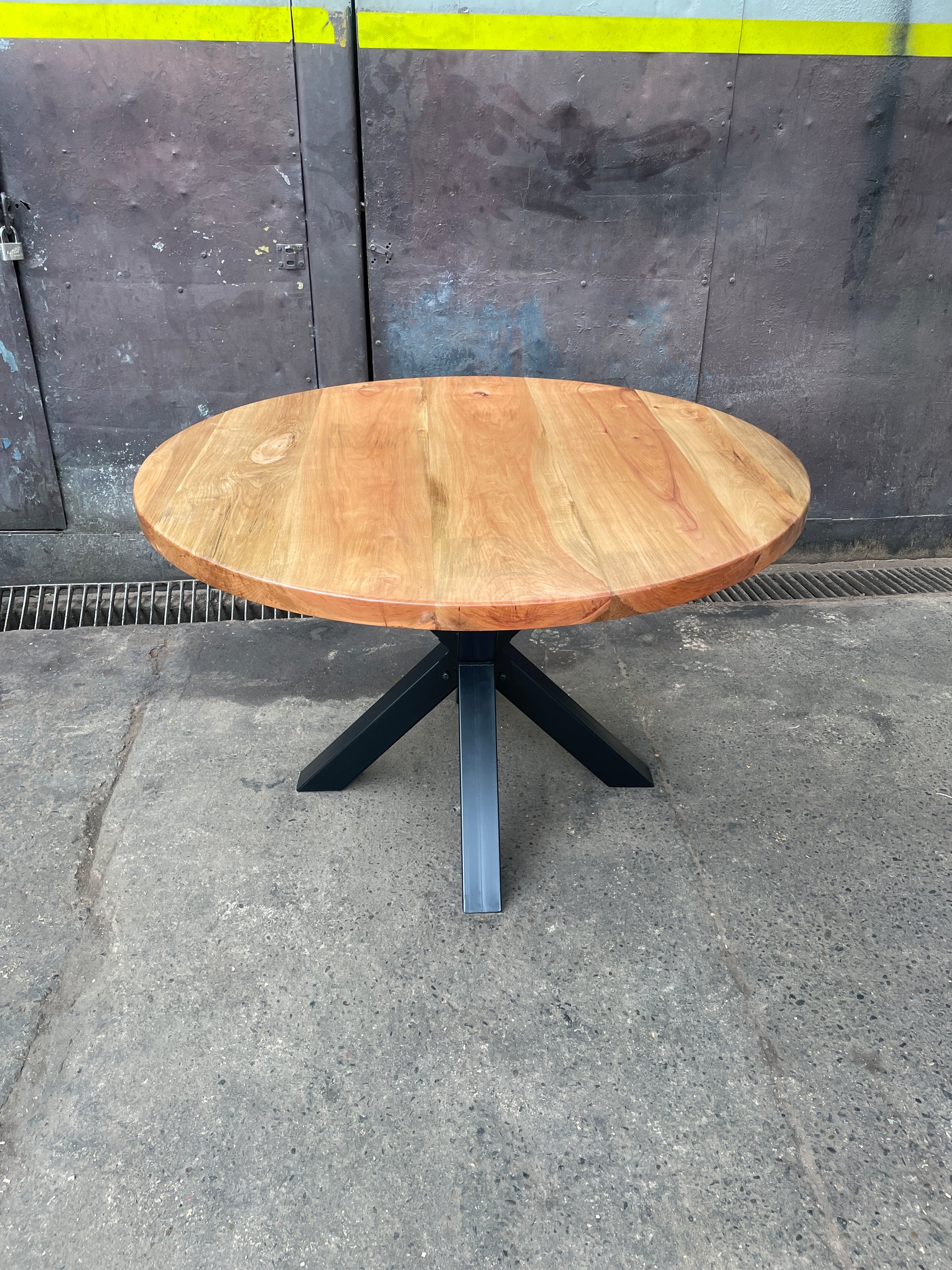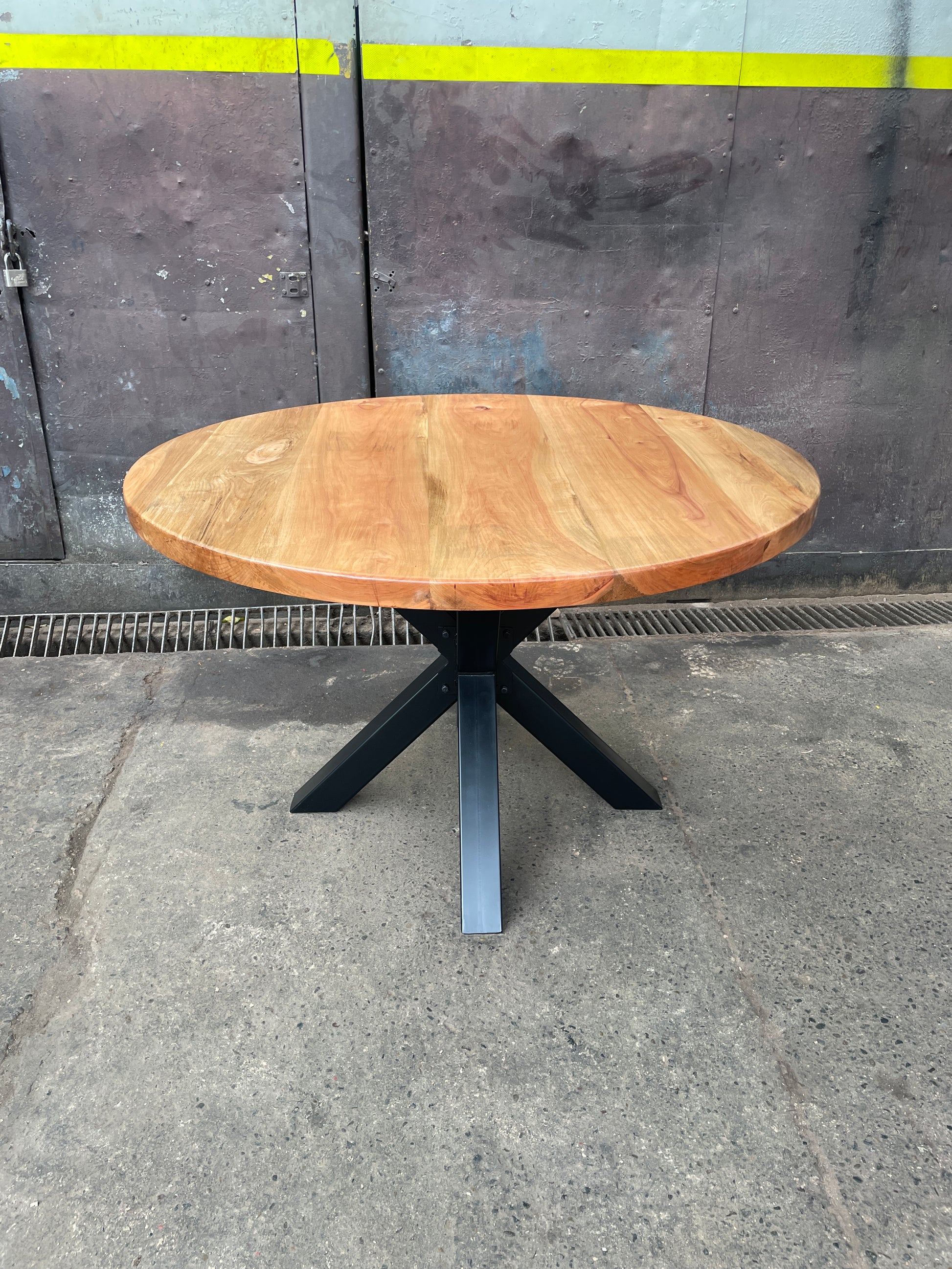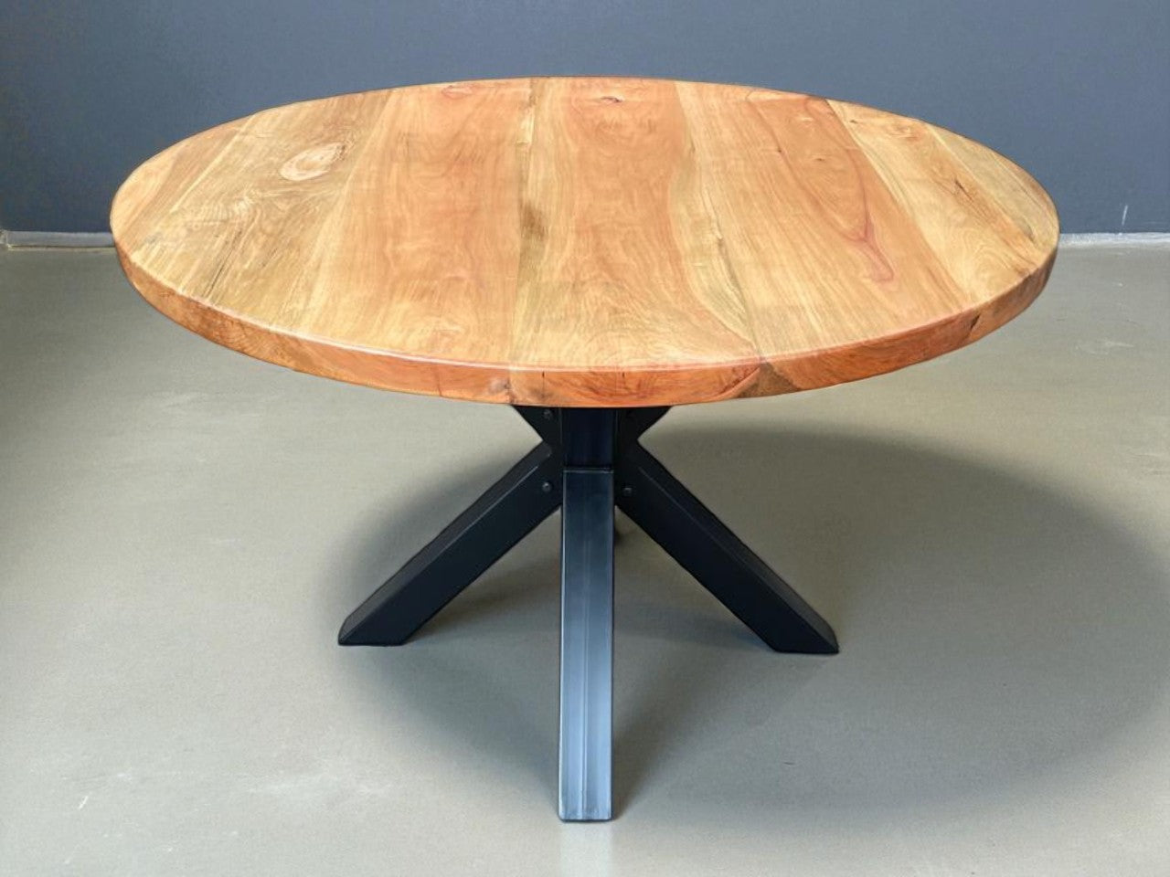 Pero la belleza de la Tai no es solo social, es estructural. Fusionamos una cubierta de roble macizo de 4 cm con una base central de fierro industrial (perfil 75x75 mm). El resultado es un contraste perfecto: la naturaleza cálida de la madera flotando sobre la solidez moderna del metal.