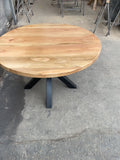 Sin cabeceras, sin jerarquías. La Mesa Tai combina la calidez de una cubierta redonda de 4 cm con la firmeza de una base de acero central.